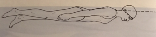 1. When your posture is correct and you are in balance, the back quarter of your head and most of your backside (including your shoulder blades and the cheeks of your butt) will be exposed to the air, and your heels will just break the surface as you kick.
